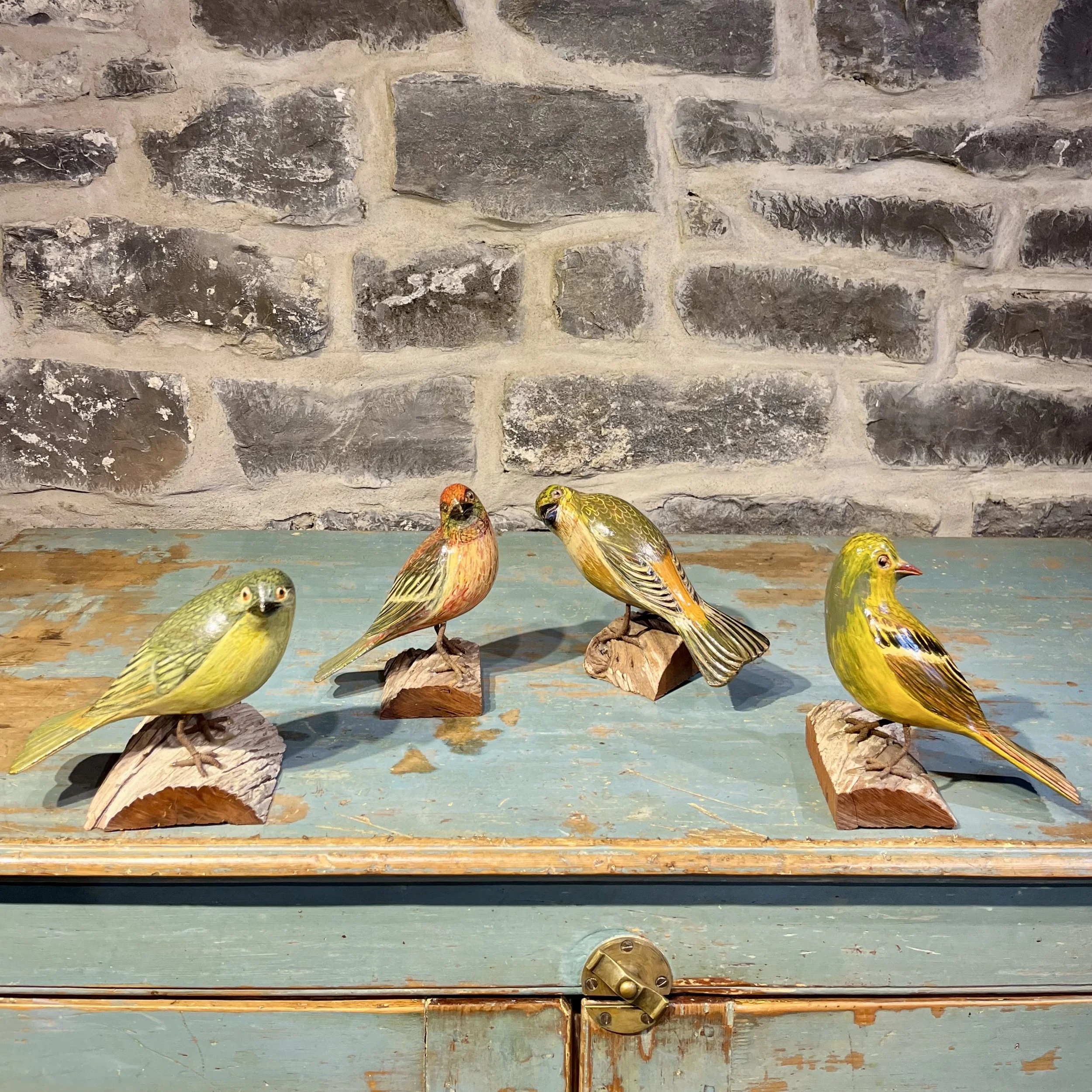 Ces 4 oiseaux vendus en lot seulement proviennent initialement d’une vieille collection ontarienne et s’inscrivent indéniablement dans sa plus fine production au sommet de son art et qui plus est regardez comme ils sont adorables et mignons!!